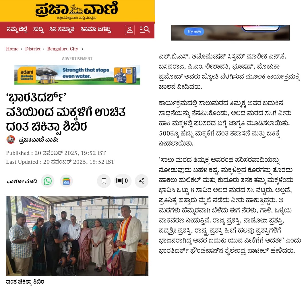 National President of our Foundation Mr. Basavaraj NK Owned LBS Group of companies partners with Bharathidarsh foundation in adoption of three children for Education, Shelter & Medicine